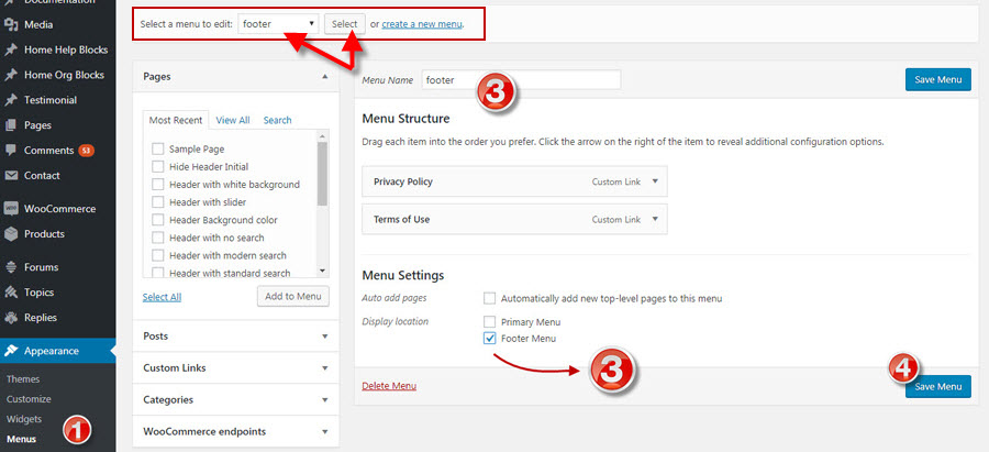 A. Setting Up Footer Menu